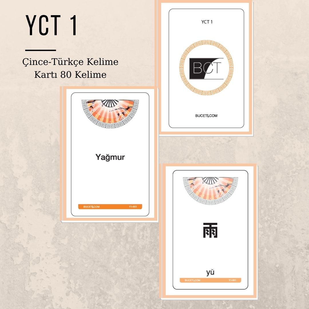 YCT 1 sınavında yer alan 80 kelimenin her biri, her iki tarafında önemli bilgileri barındıran kartlarla sunulmaktadır. Kartların bir tarafında Çince karakterler ve bu karakterlerin doğru telaffuzunu gösteren Pinyin yer alırken, diğer tarafında Türkçe anlamı bulunmaktadır. Bu çift yönlü kullanım, öğrenme sürecini daha etkili hale getirir ve dilin temel yapı taşlarını kolayca kavramanızı sağlar.